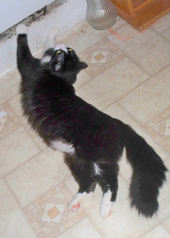 Yes, I think it's safe to say that Trouble aka Little Kitty is feeling right at home here and beginning to explore the world around him. He has a window perch in my room, a window perch that he's discovered in Pop's room. He is getting over his fear of Mawmaw (or, as he saw her, "the lady who brings the goggies with her"). He has started patrolling his territory. He has learned that if he looks pitiful, Pop will feed him in the morning. He learned that there are lots of nooks and crannies to explore in the Utility Room. He has started camping out with Mawmaw when she gets on the computer. He has intimidated Sammy, my granddog. He still has a healthy fear of Lily, the "big goggie" but thinks if he hides behind things (like the chair) he can "poke a stick at the tiger". He still bullies Stubby. He won't drink from the communal water bowl and still wants me to run water in the tub while I go to the bathroom so he can splash in it. He supervises me when I cook or wash dishes or go to the bathroom. If I don't take him in the bathroom with me, he stands outside the door and waits for me. He can open the cabinet doors and is trying to learn how to turn a door knob. He still won't let Cody get near him. He spends about 50% of his time sleeping under the bed and about 40% of the time sleeping on the bed with me.