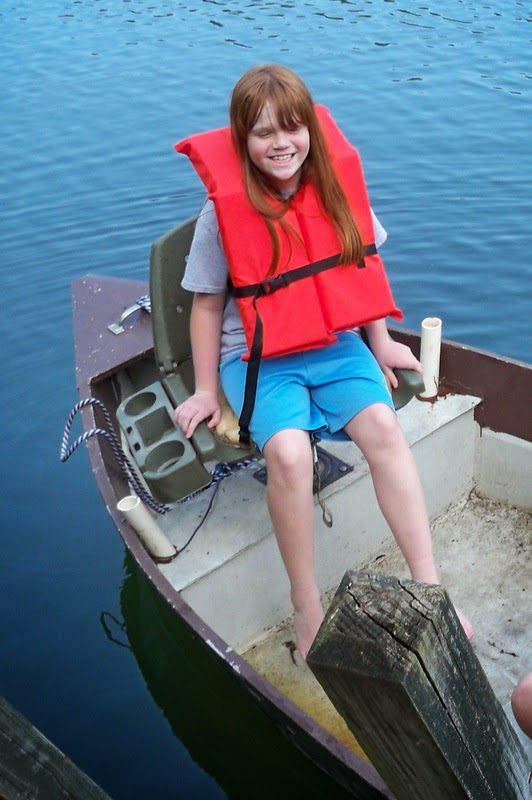 All that being said... it was nice to be down at the lake watching Austin and Pop launch my Granddaddy's old fishing boat into the water. Granddaddy Pennington died in 1978 so the boat is old, practically an antique, but she's still seaworthy. We have to replace the battery for the trolling motor because it isn't holding a charge, some small holes had to be plugged and Austin had to clean a bird's nest out of the hull but overall, not bad for an old boat.